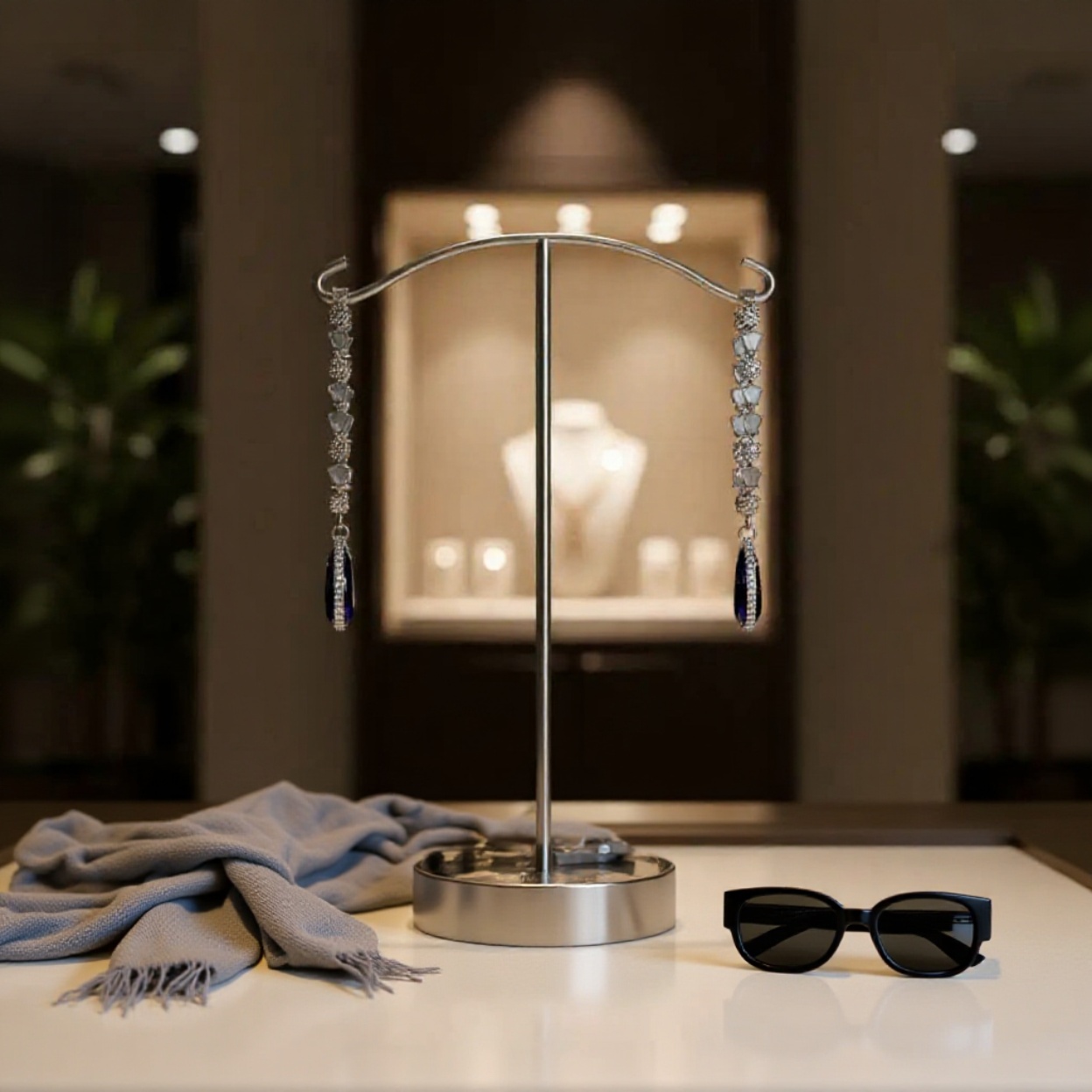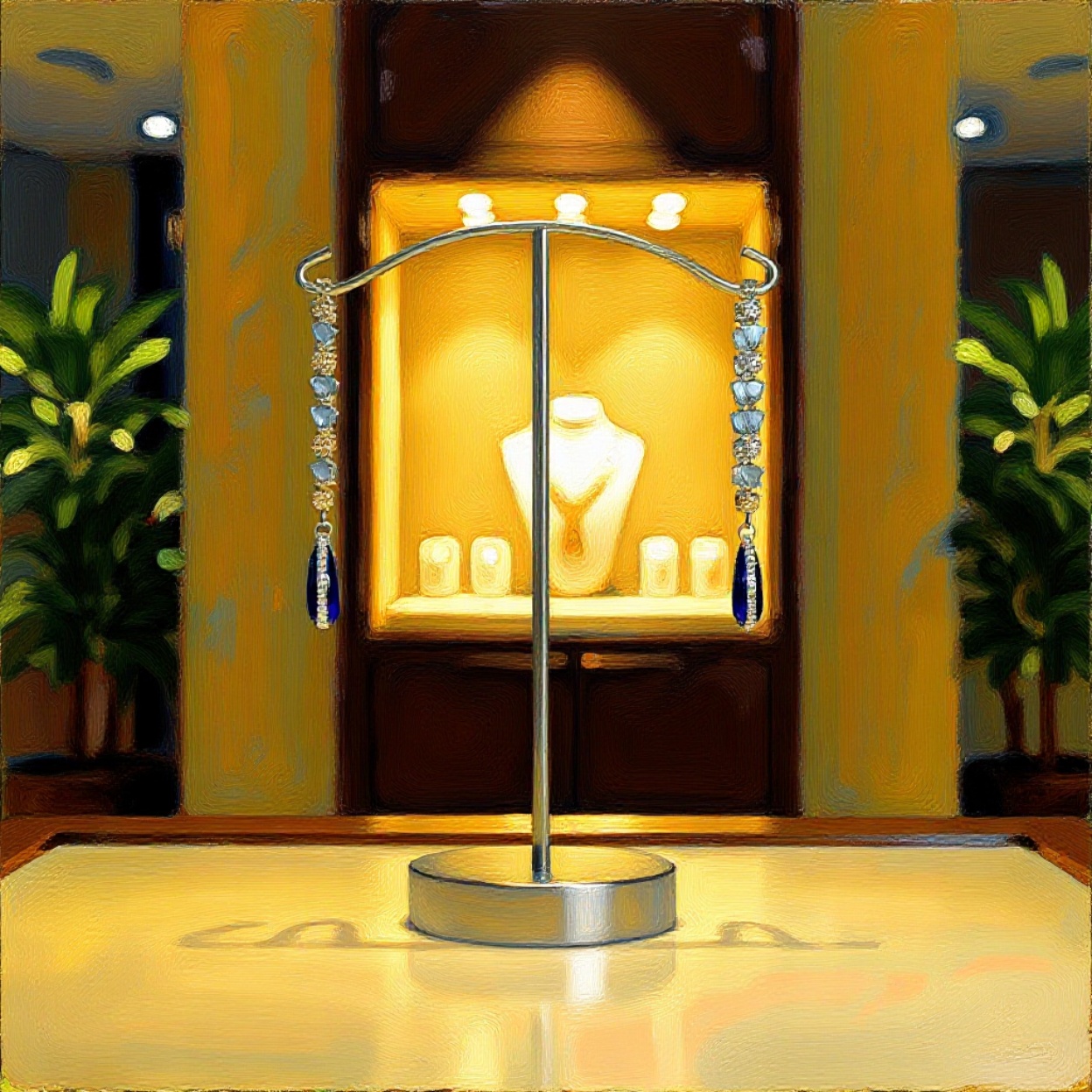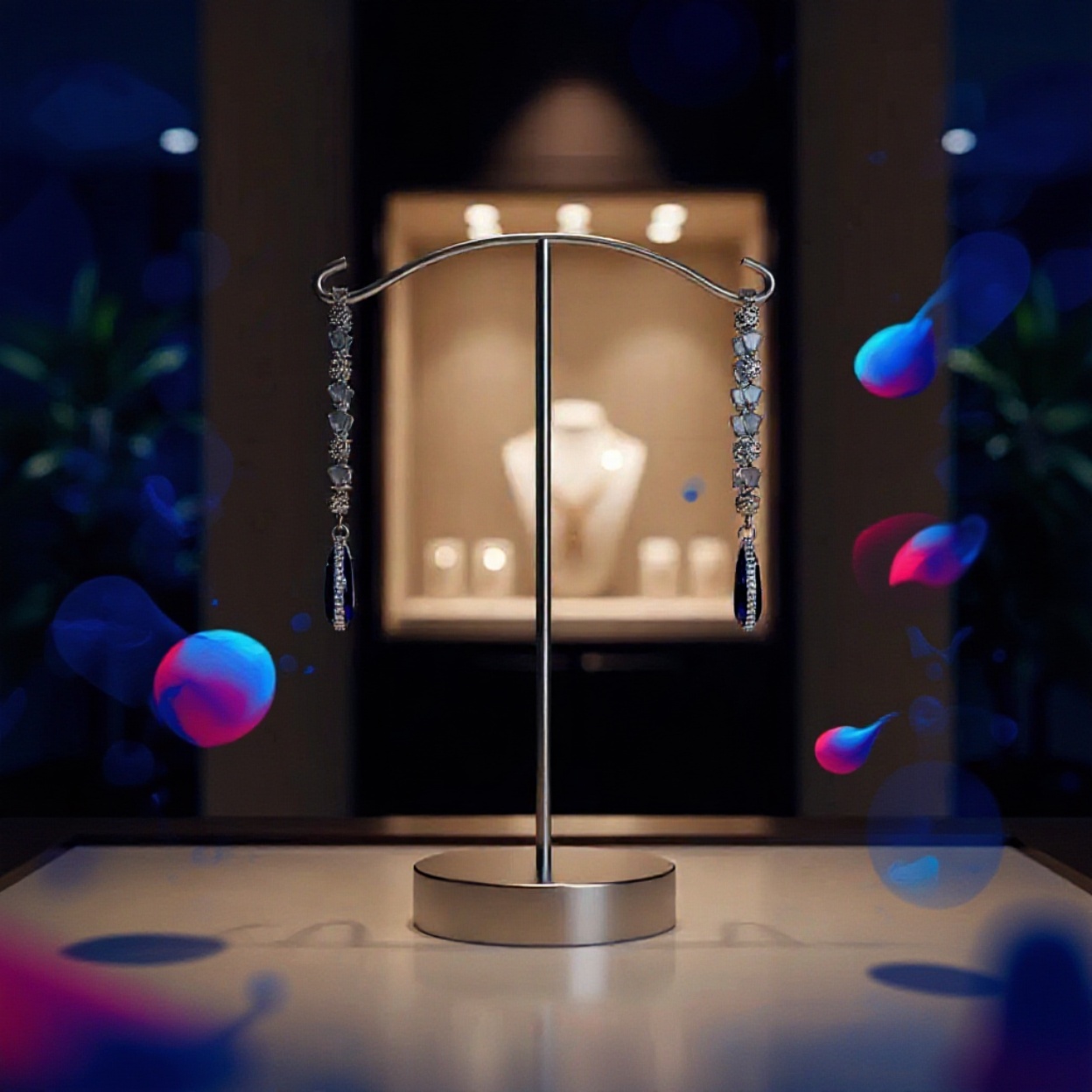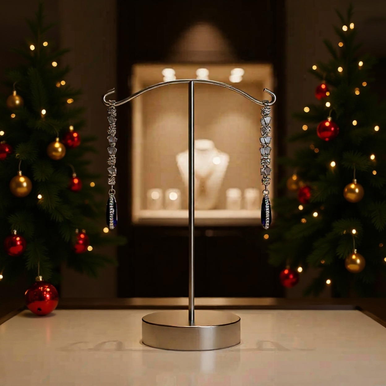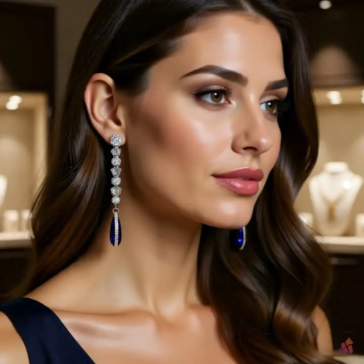 • Structure: Graduated drop—smaller American diamonds near the lobe, larger stones cascading downward to the deep-blue glass drop.