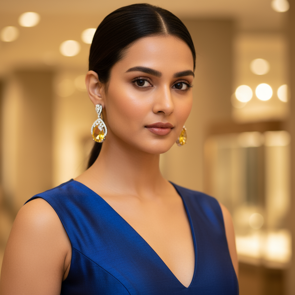 Jewelry is more than just an accessory—it is an expression of personality, confidence, and style. These White Gold Plated Earrings with Deep Yellow Glass Stones are designed for women who appreciate elegance, timeless beauty, and fine craftsmanship. The vibrant yellow stones add a radiant glow that instantly elevates your overall appearance, while the high-quality white gold plating ensures durability and sophistication.