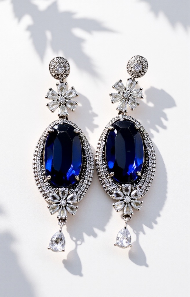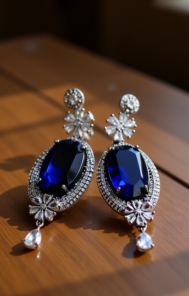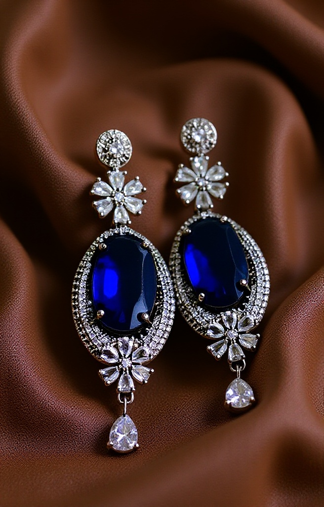 67. Royal Blue Oval Stone Drop Earrings with Diamond Accents – Elegant Party Wear Jewelry