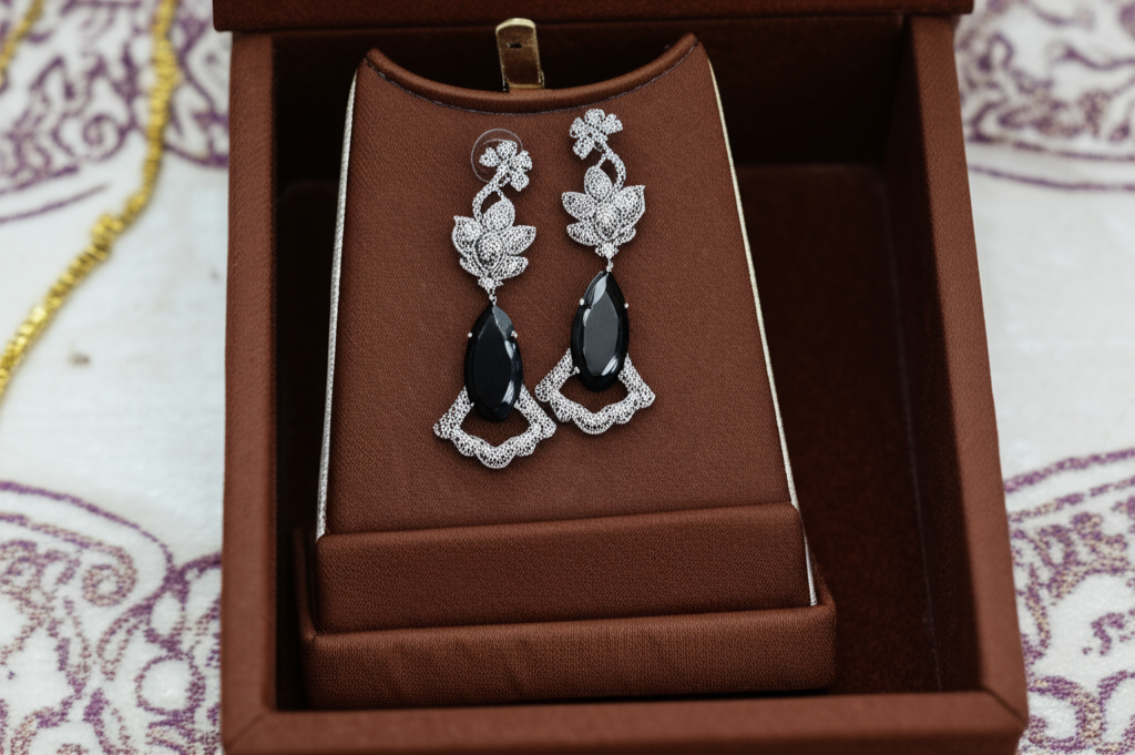 Perfect Gift Option: Searching for a memorable gift that truly stands out? The Midnight Bloom Dangle Earrings are an impeccable choice for the special women in your life. Be it a birthday, anniversary, Valentine’s Day, Mother’s Day, or a festive celebration, these earrings convey thoughtfulness, luxury, and impeccable taste. They come beautifully packaged, ready to delight your loved one and create a cherished memory. It’s a gift that symbolizes timeless beauty and enduring affection.