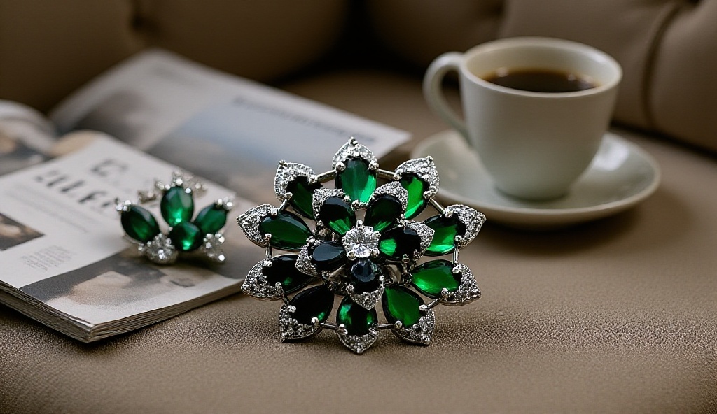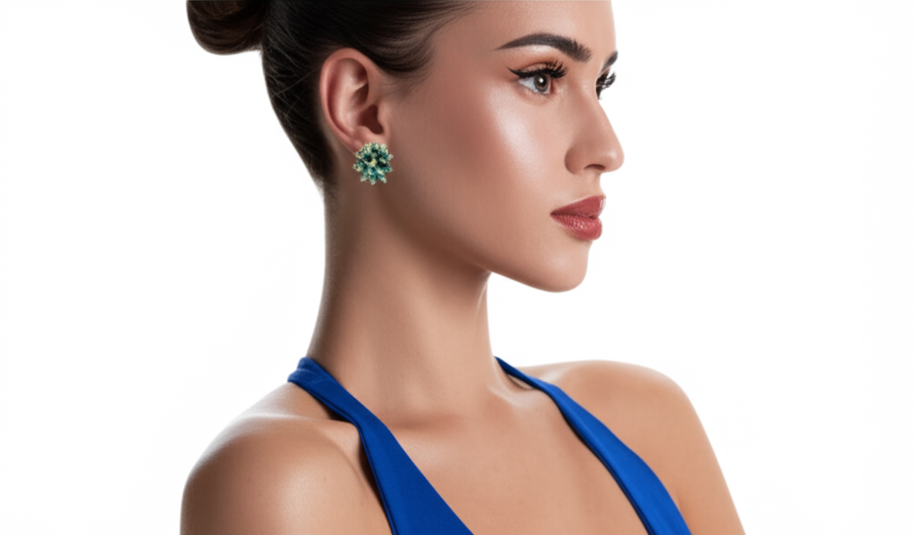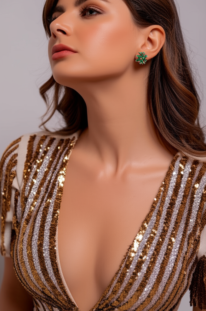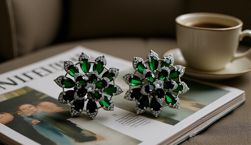 Elevate your style with these stunning White Gold Plated Earrings adorned with vibrant Green Crystal Stones in a beautiful floral design. Perfect for adding a touch of elegance to any outfit