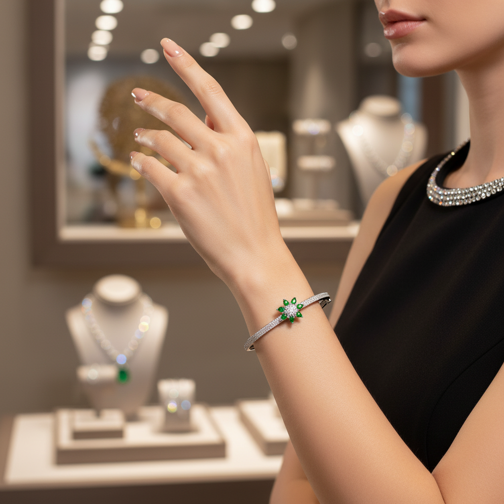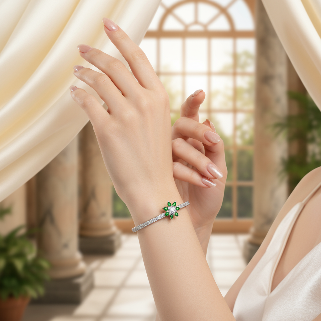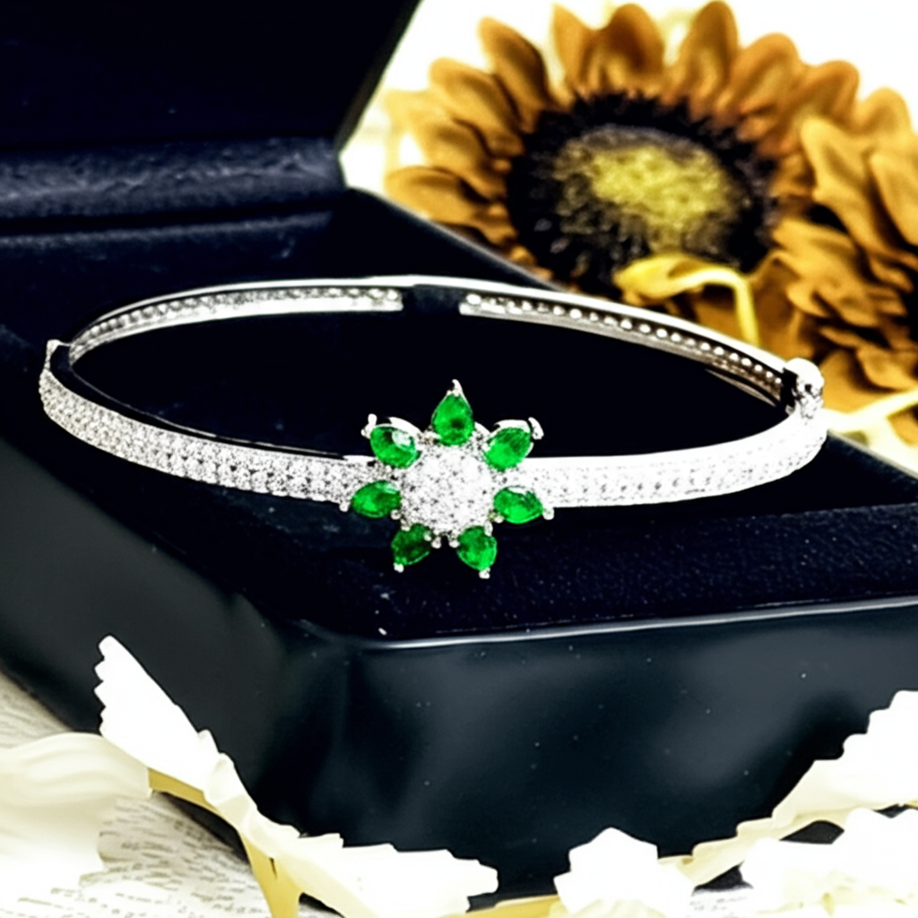 This White Gold Plated Bracelet with American Diamonds & Green Glass Stones also makes for a thoughtful and luxurious gift for loved ones on anniversaries, birthdays, weddings, or festive occasions like Diwali and Eid. Every piece comes in a premium jewelry box, making it a ready-to-gift item straight out of the package.