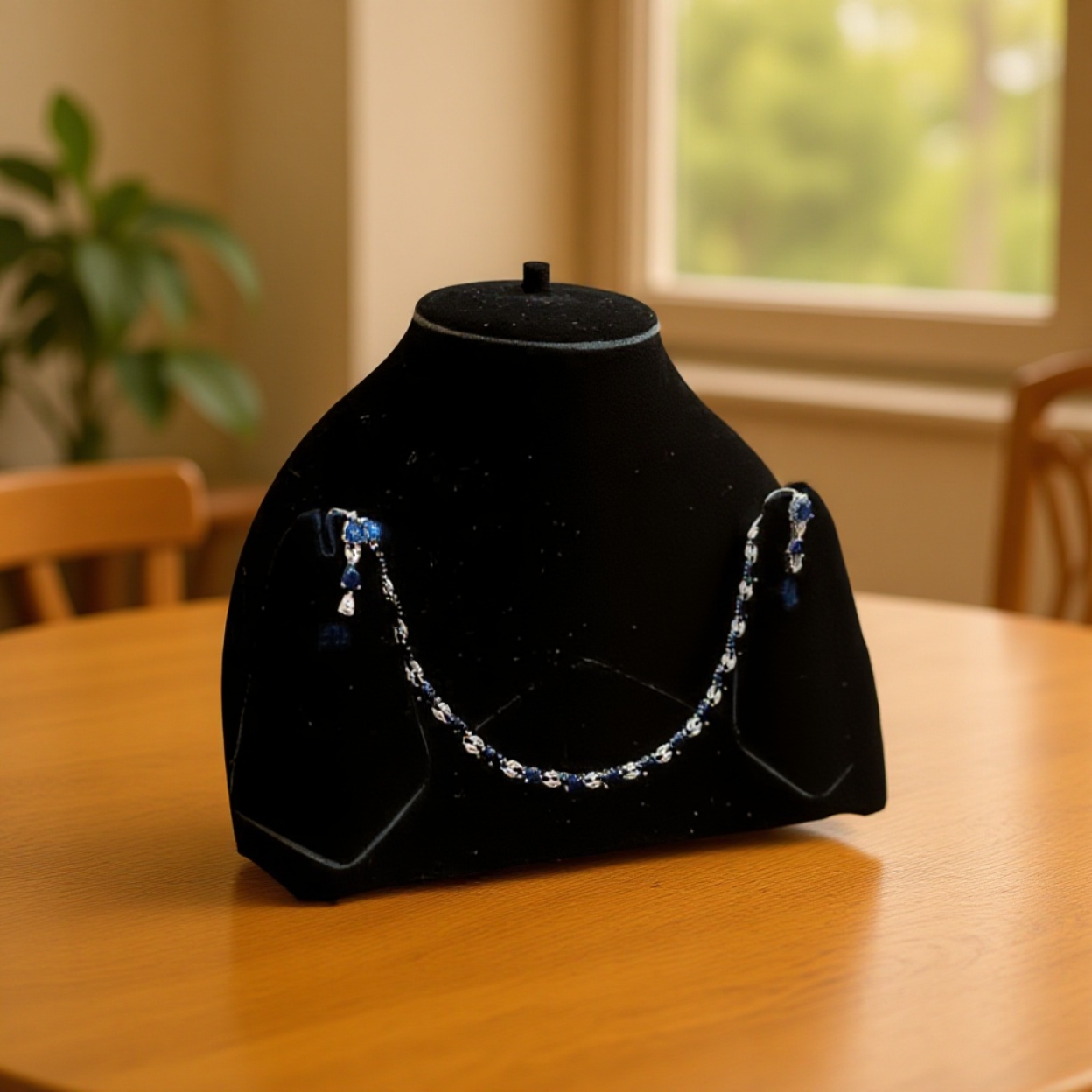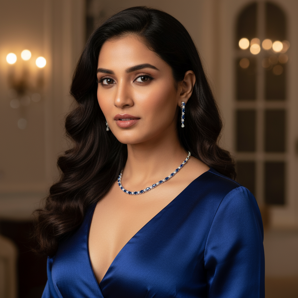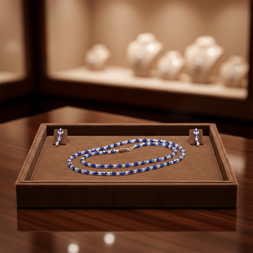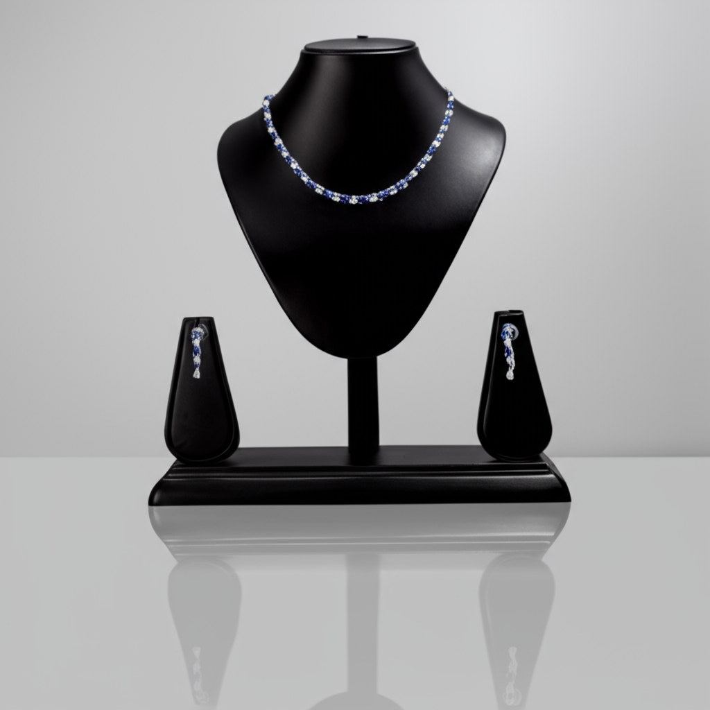 Why You Will Love It: You will fall in love with this set for its unparalleled beauty, exceptional craftsmanship, and incredible value. The dazzling sparkle of the American diamonds, combined with the rich hues of the blue and white glass stones, creates a truly mesmerizing effect. The elegant white gold plating adds a touch of timeless luxury, while the comfortable design ensures you can wear it all day or night with ease. This set is not just an accessory; it’s a statement piece that empowers you with confidence and radiance. Its versatility ensures it will become a go-to favorite for any occasion.