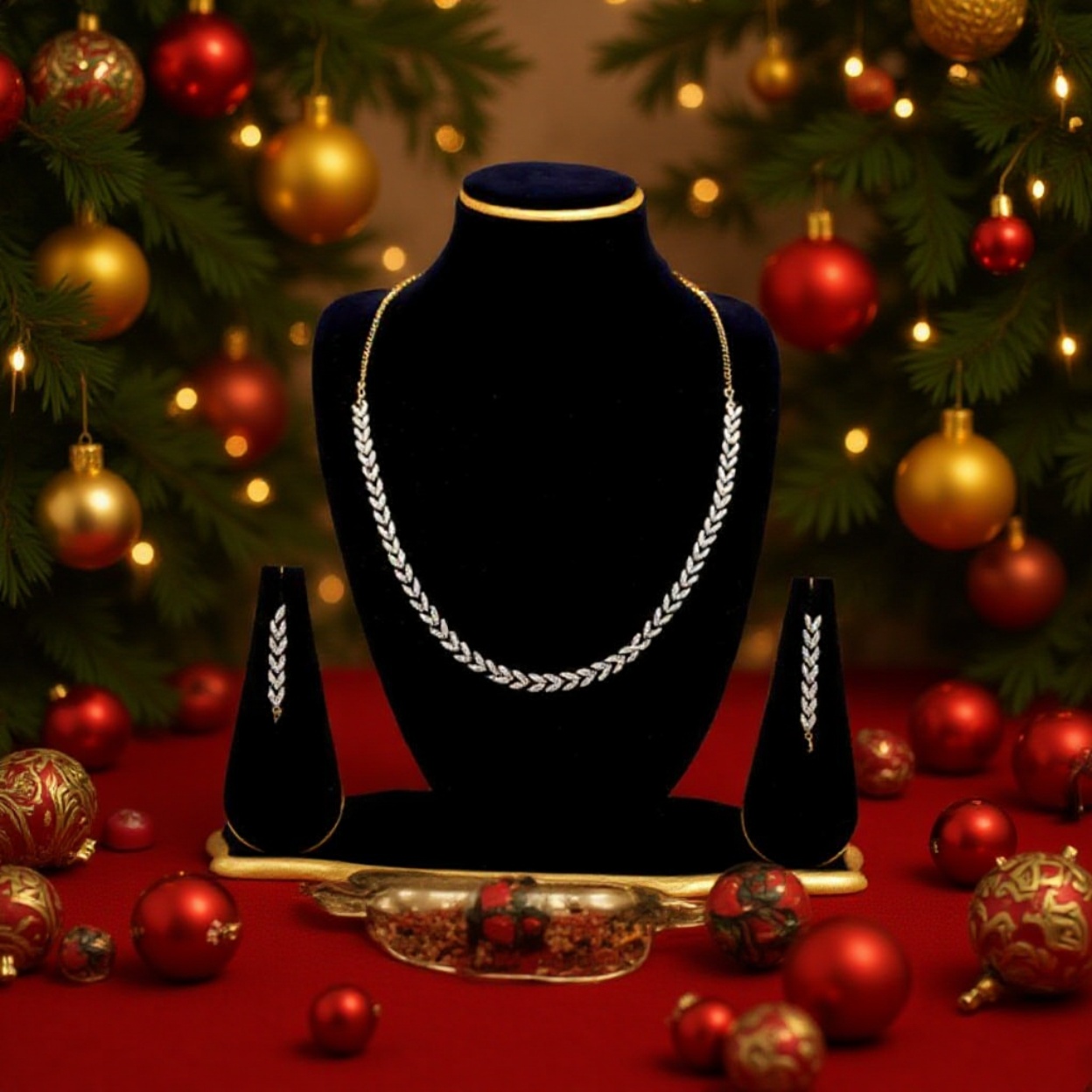 You will undoubtedly fall in love with the radiant sparkle and sophisticated design of this American Diamonds White Gold Plated Necklace With Earrings. It offers the look and feel of high-end fine jewelry at an exceptional value. The intricate leaf motif is both timeless and trendy, ensuring it will remain a stylish piece in your collection for years to come. The lightweight design ensures comfortable wear, allowing you to adorn yourself with elegance all day or night. This set is a powerful confidence booster, designed to make you feel elegant, radiant, and absolutely unforgettable. Its ability to transition seamlessly from casual to formal settings makes it an indispensable addition to any jewelry wardrobe.