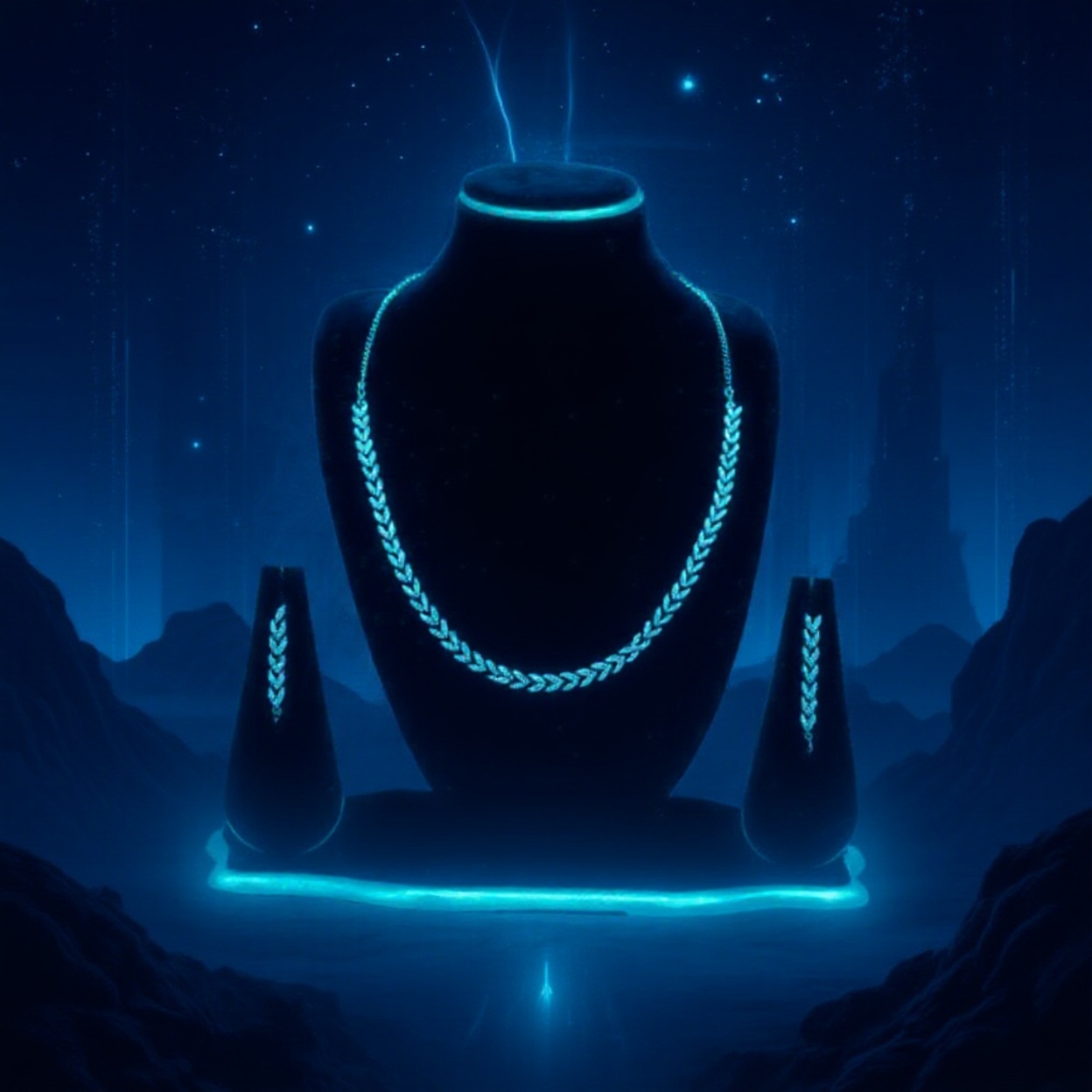 The design philosophy behind this American Diamonds White Gold Plated Necklace With Earrings is one of delicate sophistication and natural inspiration. The necklace features a gracefully curved chain adorned with a continuous pattern of stylized leaves, intricately detailed and encrusted with sparkling American diamonds. This flowing motif creates a sense of organic beauty and elegance. The matching earrings perfectly complement the necklace, featuring a similar leaf design that dangles delicately, framing the face with a touch of refined sparkle. The thoughtful arrangement of stones and the precise detailing in the leaf pattern highlight the exceptional artistry involved.