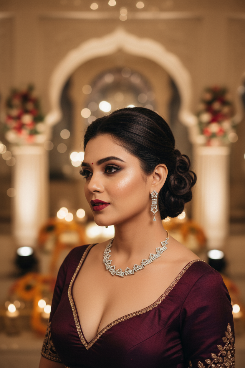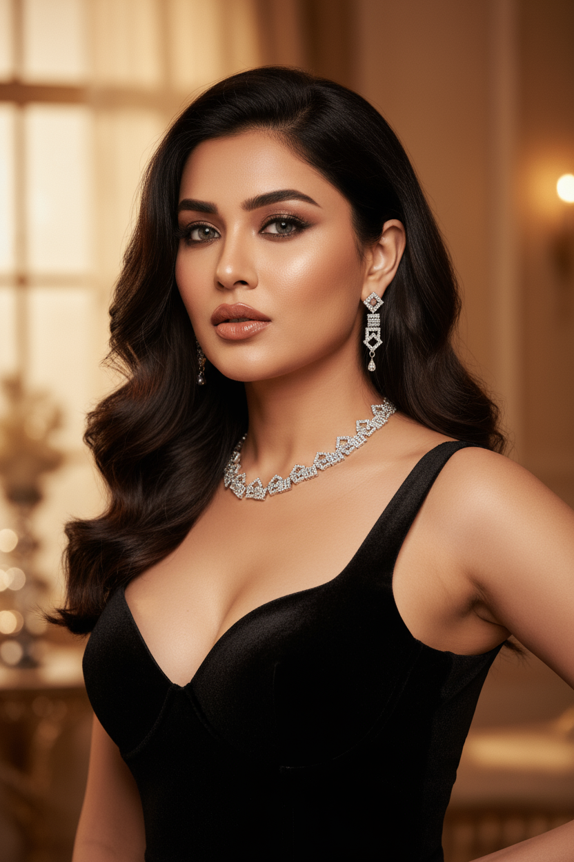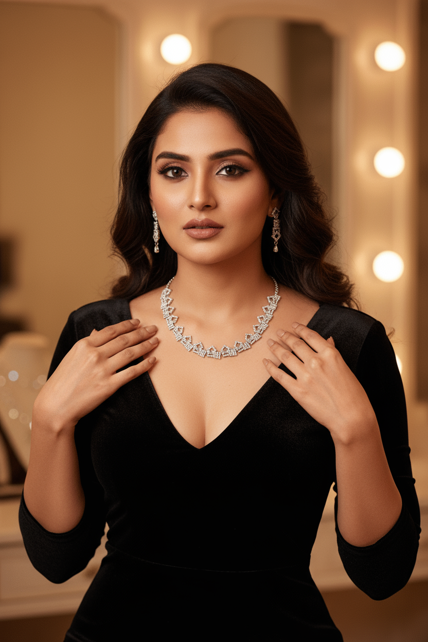 Whether you are a bride looking for a minimal yet glamorous touch, or someone attending a high-class party, this necklace set adds a sophisticated sparkle to your outfit. Pair it with a saree, gown, or evening dress to elevate your entire look.