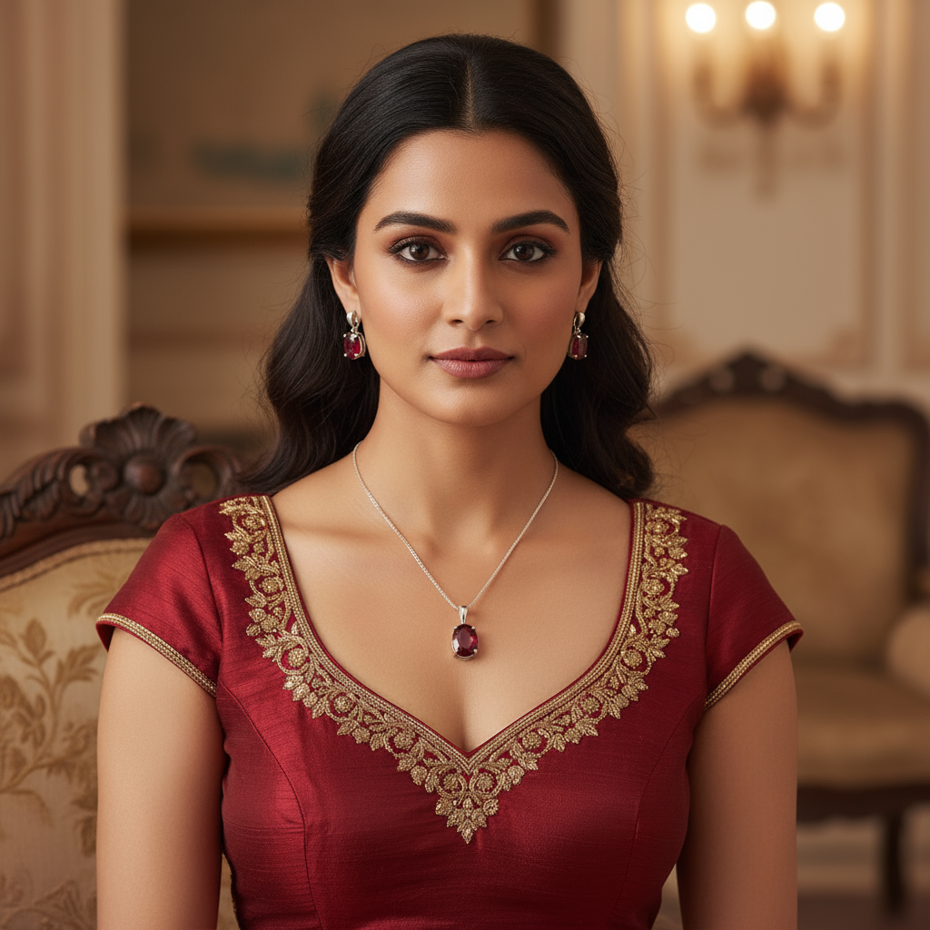 - Occasion: This Deep Red Pendant and Earrings Set is incredibly versatile. It’s perfect for adding a touch of glamour to formal events, evening wear, or even elevating your everyday professional attire. Whether it’s a wedding, anniversary, gala, or a romantic dinner, this set will ensure you shine.