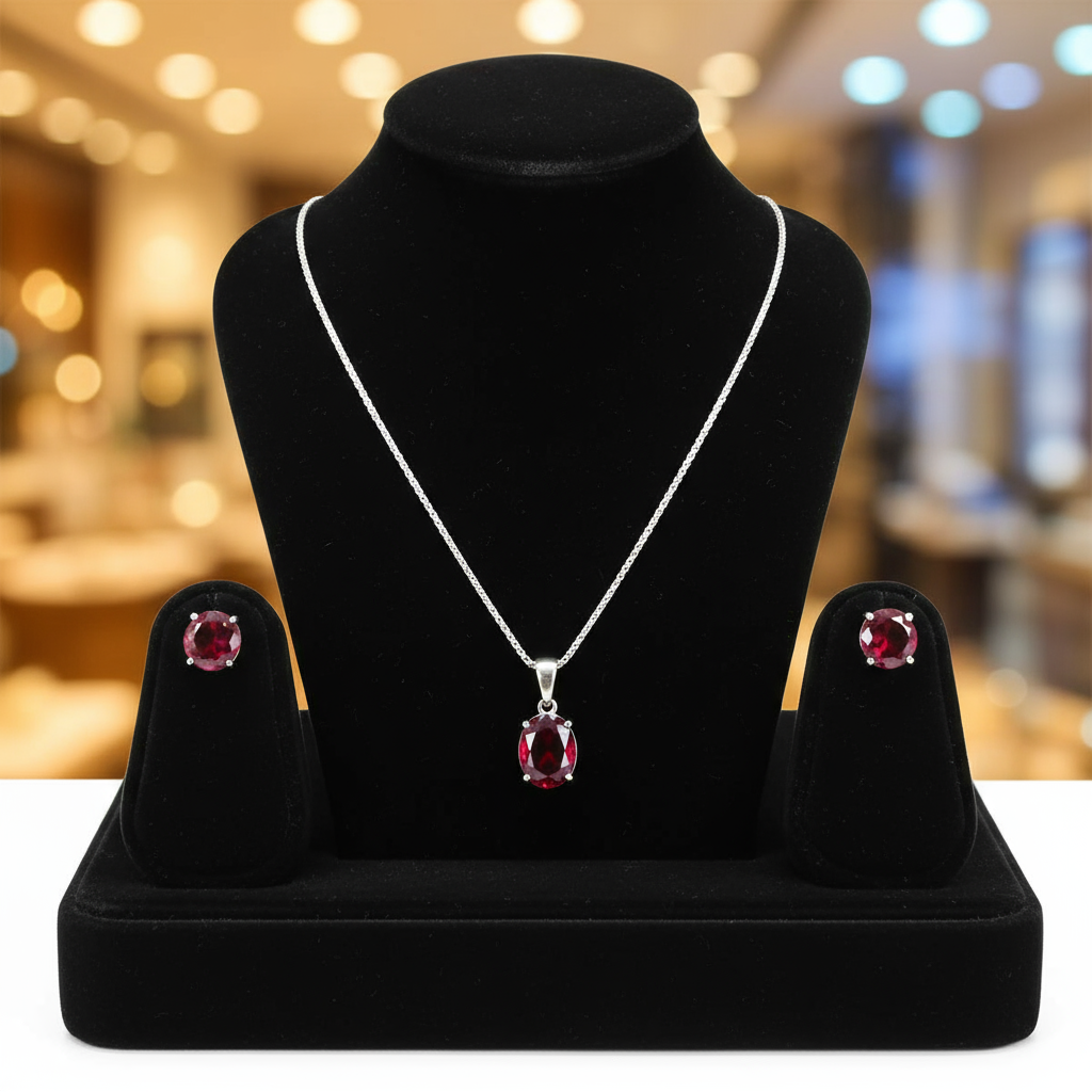 Care Instructions: To maintain the lustrous beauty of your Deep Red Pendant and Earrings Set: