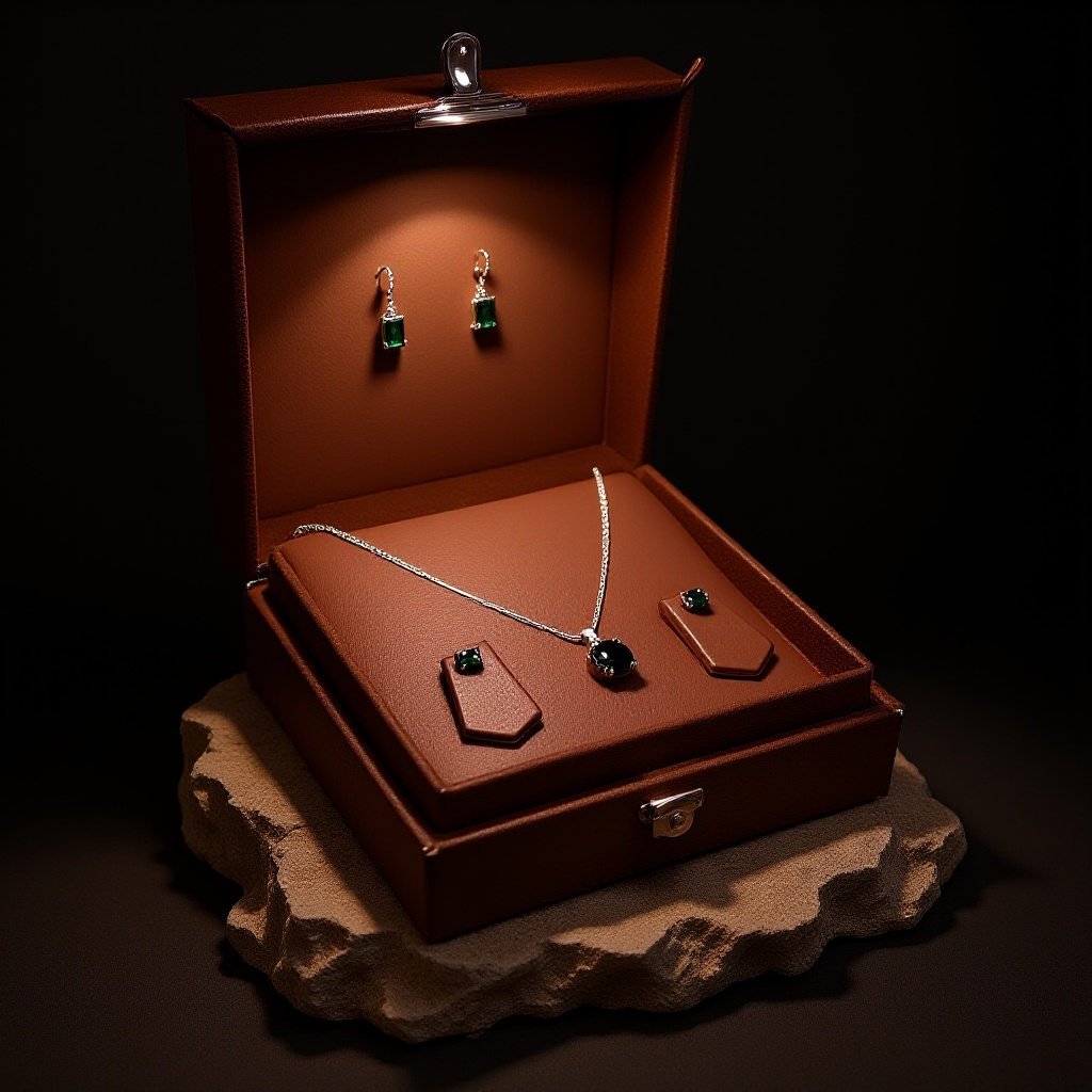 - Stones: High-quality, faceted Deep Green Glass Stones, selected for their intense color, clarity, and captivating sparkle.