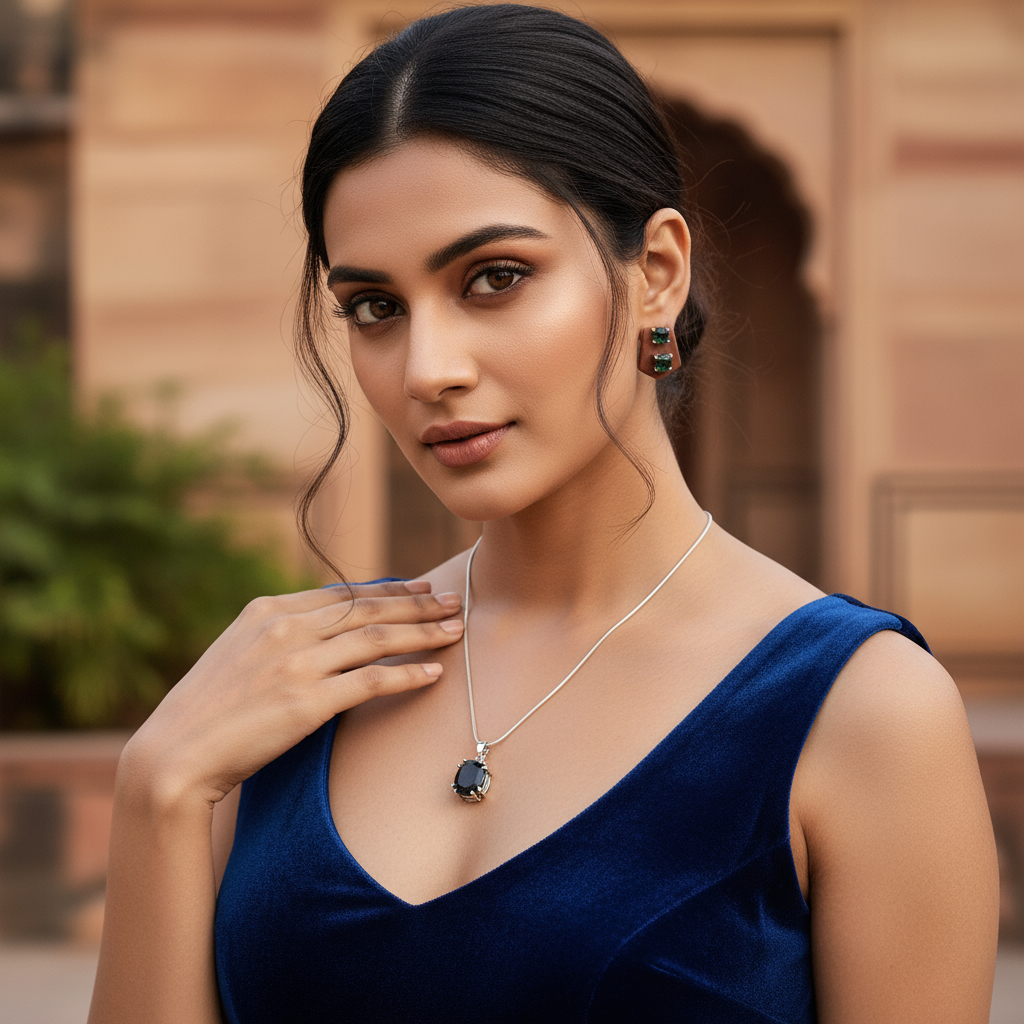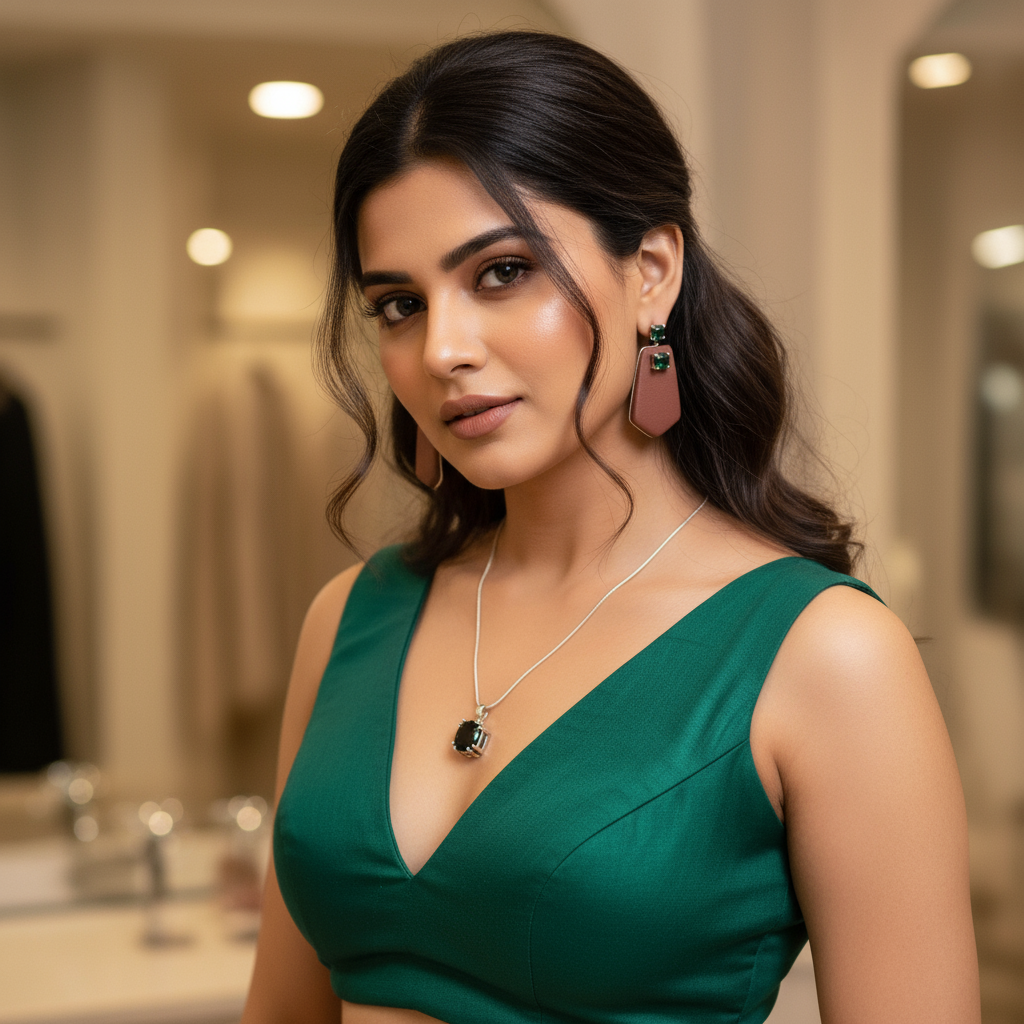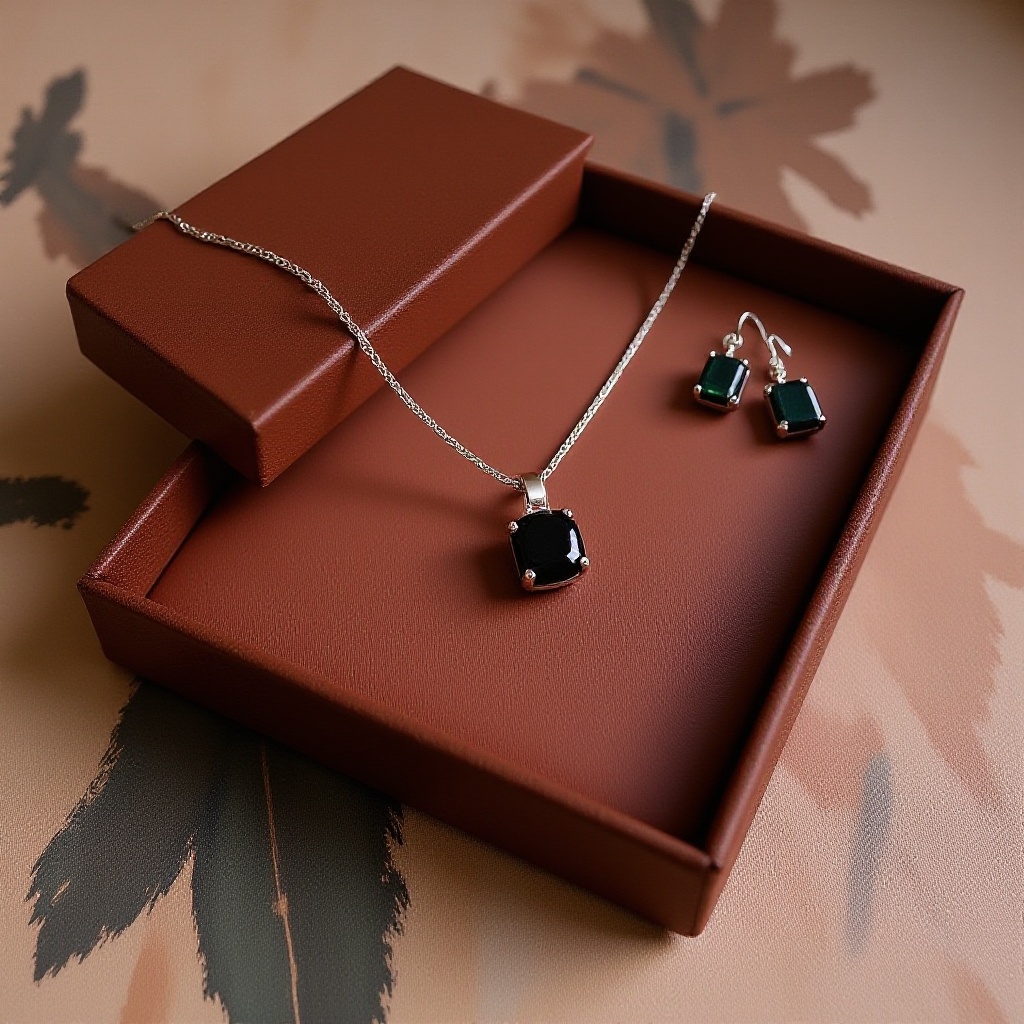 Discover the allure of deep, enigmatic beauty with our breathtaking White Gold Plated Earrings And Pendent With Deep Green Glass Stones set, adorned with exquisite Deep Green Glass Stones. This meticulously crafted ensemble is designed to captivate and enchant, offering a perfect blend of timeless sophistication and contemporary flair. The lustrous white gold plating provides a radiant, cool-toned canvas that makes the vibrant, deep green of the glass stones truly mesmerizing. This jewelry set is more than just an accessory; it’s a statement of refined taste and an embodiment of captivating charm, perfect for the discerning individual.At the heart of this collection lies the unparalleled beauty of the White Gold Plated Earrings And Pendent With Deep Green Glass Stones. Each piece showcases a precisely cut, faceted Deep Green Glass Stone, chosen for its intense, jewel-like color and remarkable brilliance. These stones are expertly set to maximize light reflection, creating a hypnotic sparkle that draws the eye. The deep green hue evokes a sense of mystery, luxury, and natural beauty, making this set an ideal choice for those who wish to exude confidence and elegance. The unique design of the pendant and earrings features a modern, stylized shape that adds a distinctive edge to the classic gemstone pairing, ensuring it stands out with understated glamour.